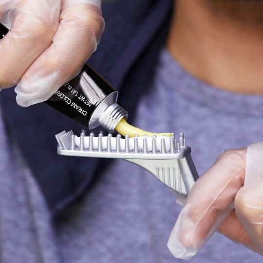 1. Squeeze Cream Colorant (Tube 1) to fill up one row of the groove on the Applicator Comb.